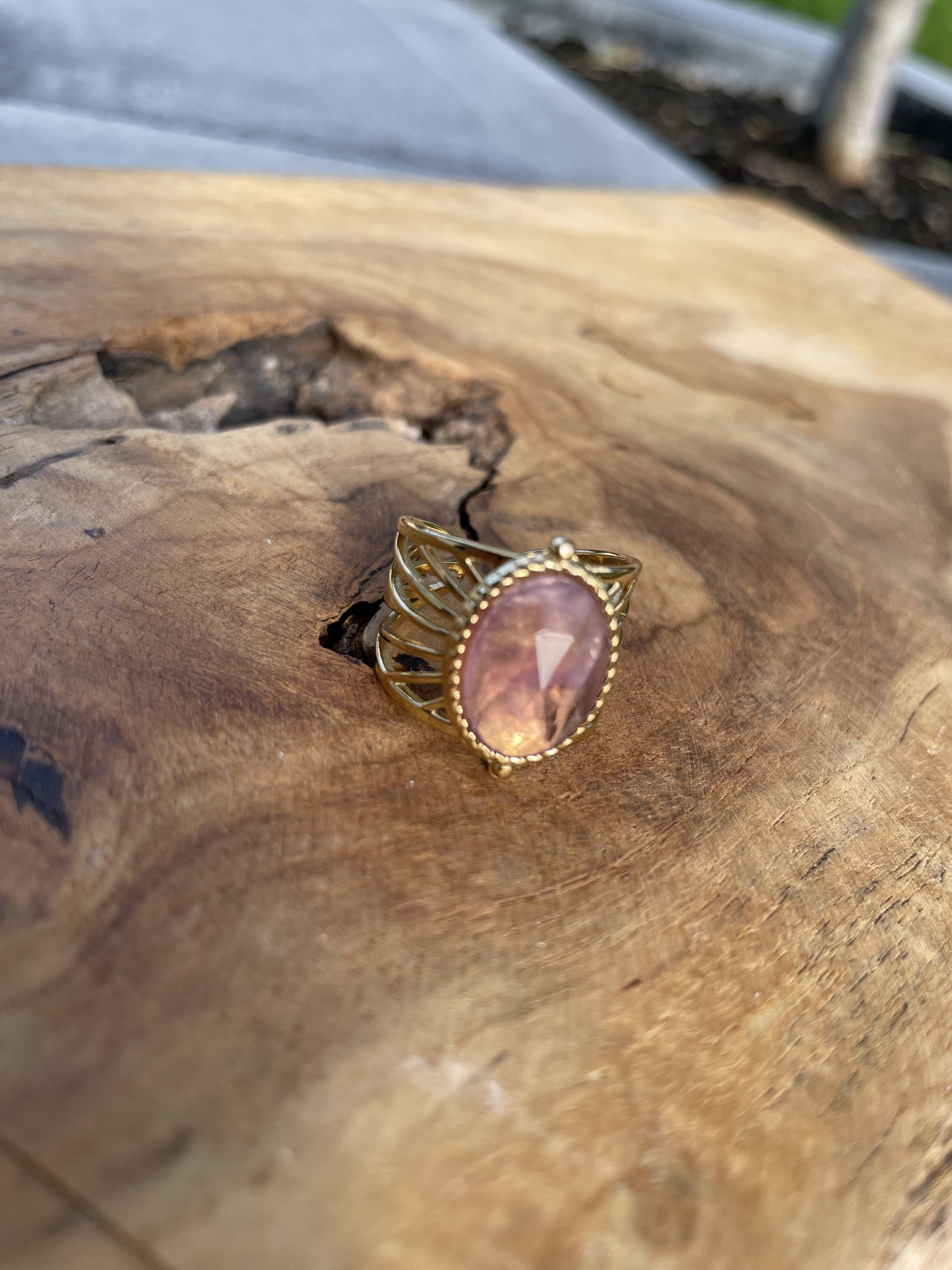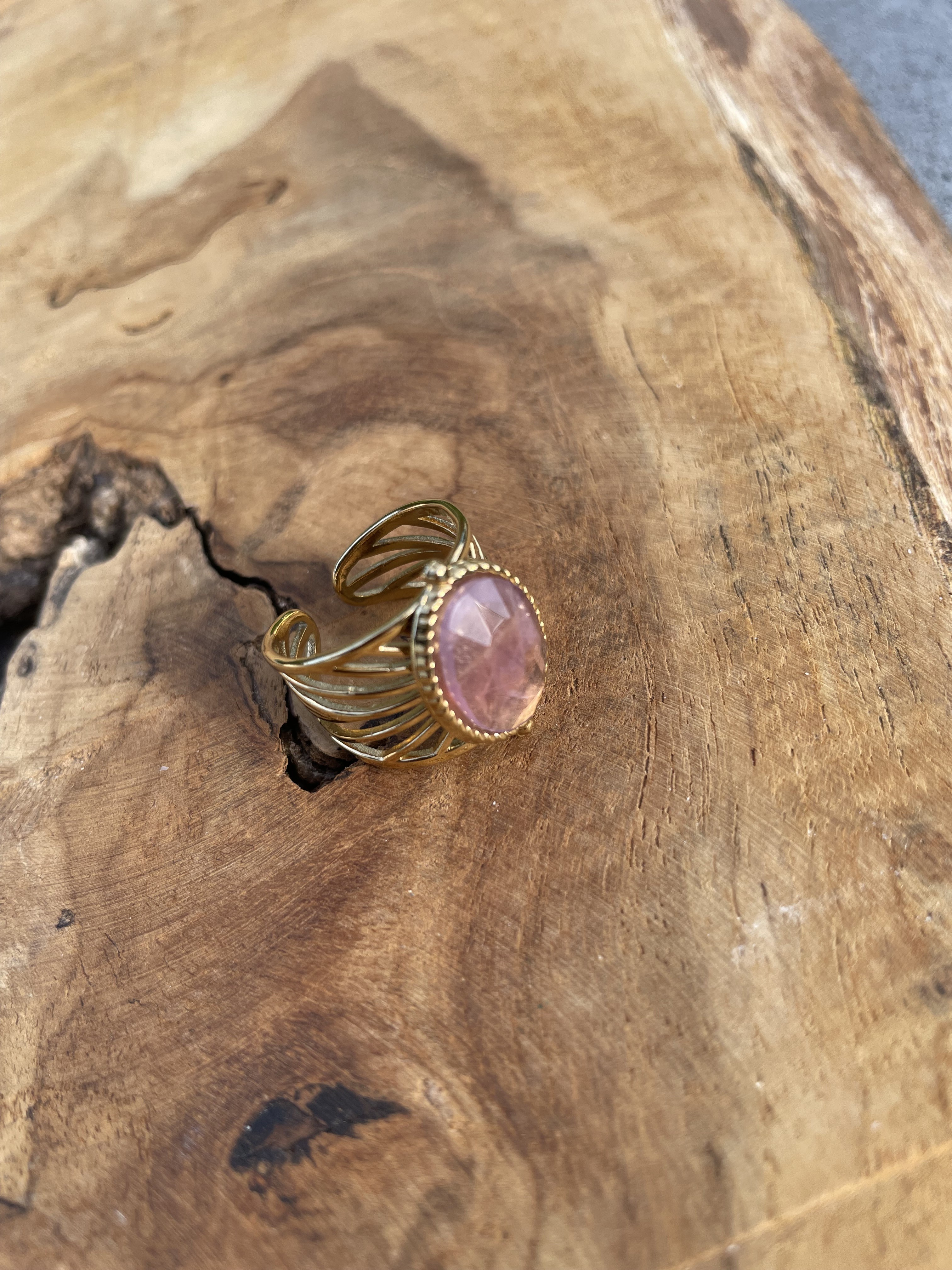 Bague en acier inoxydable avec pierres naturelles  - Taille ajustable