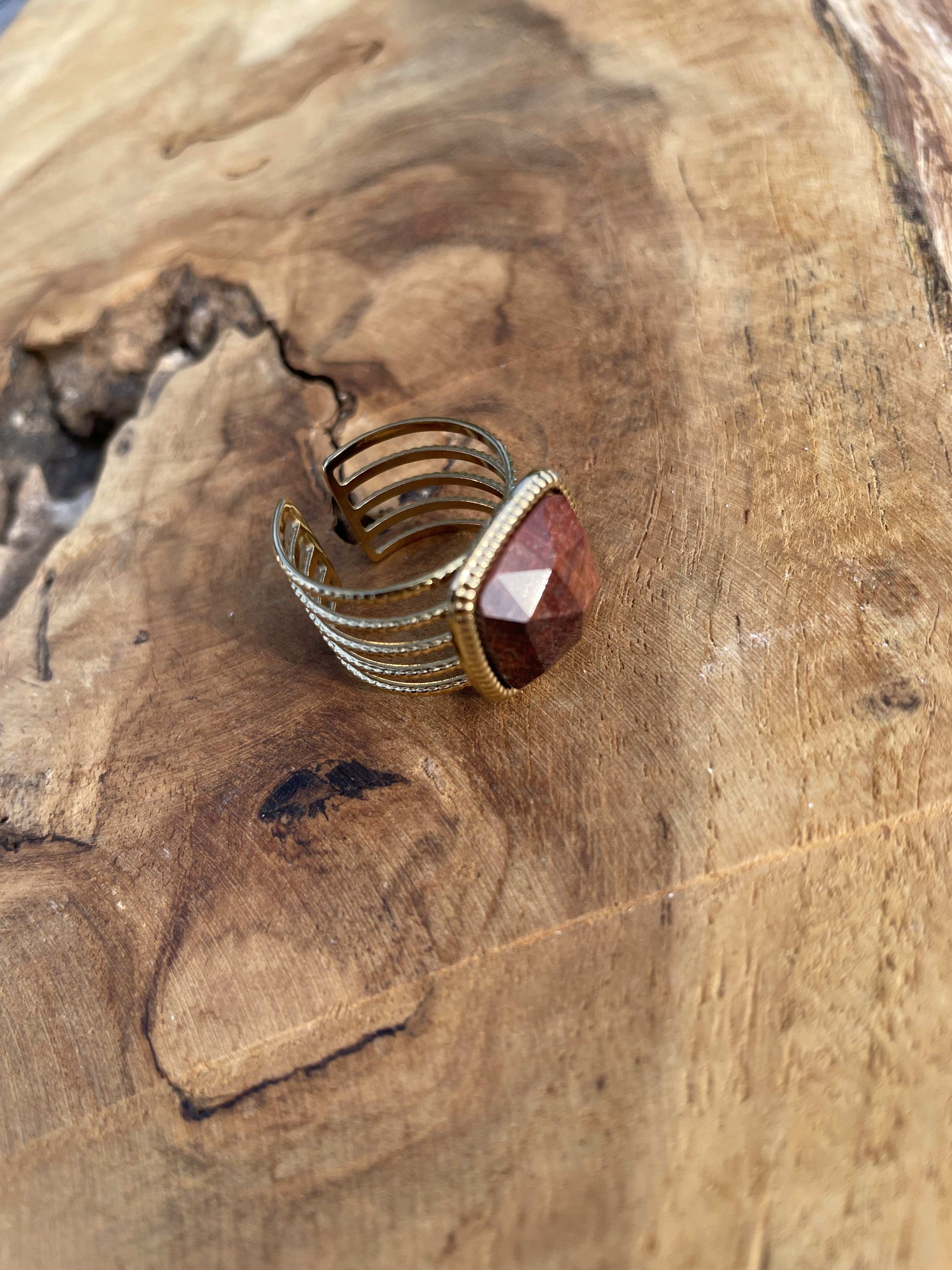 Bague avec pierre naturelle en Oeil de Taureau - Taille ajustable