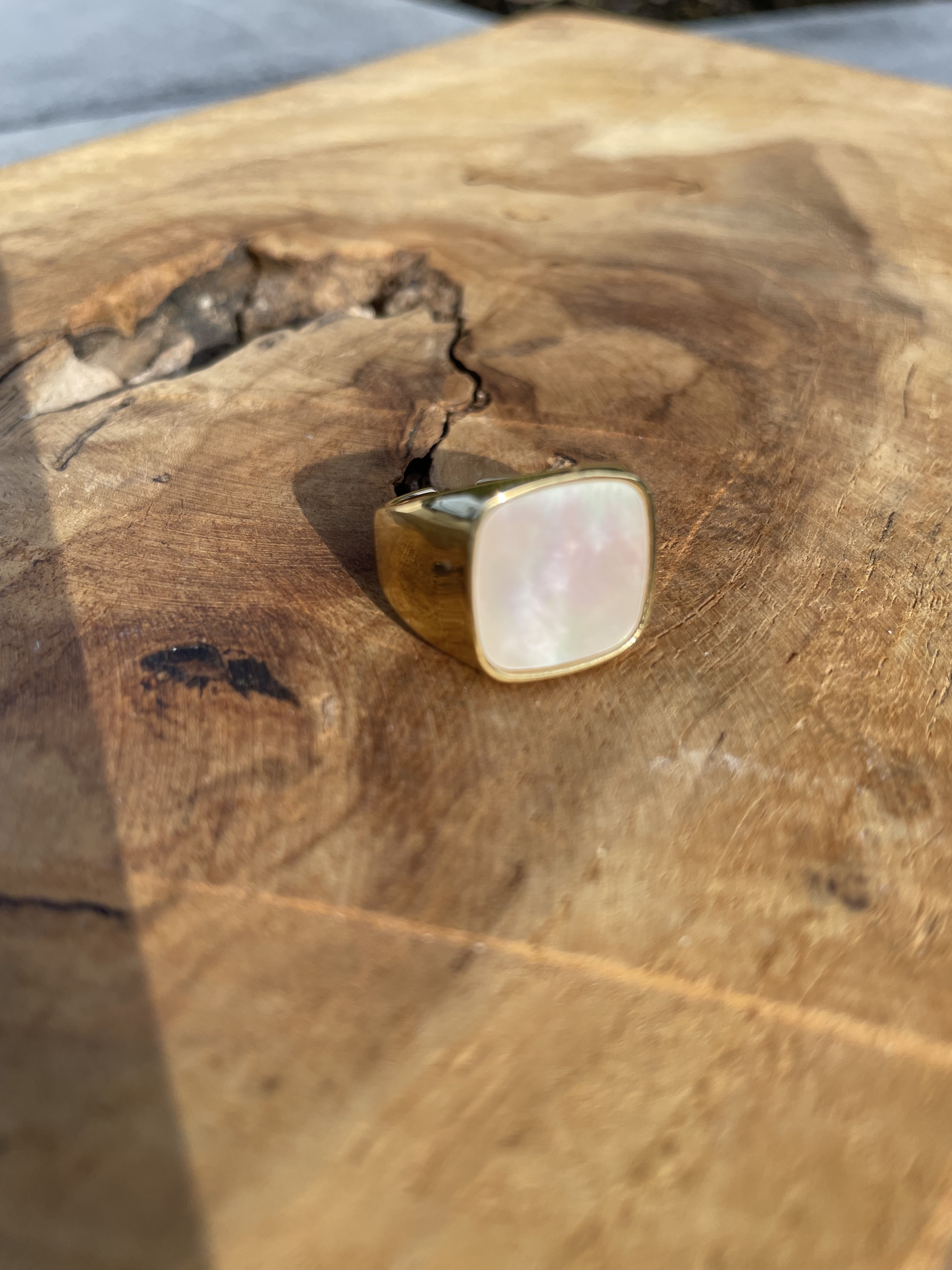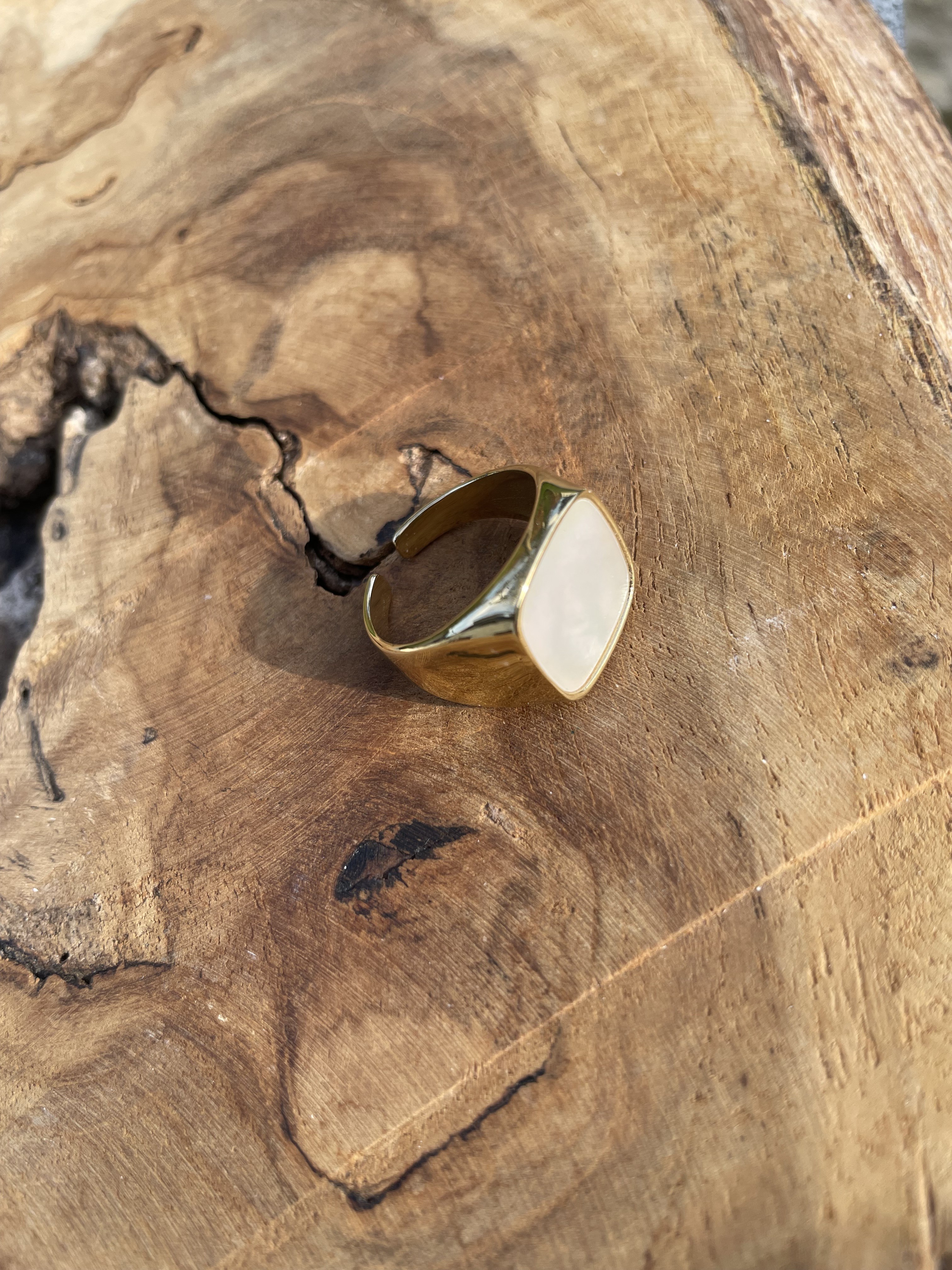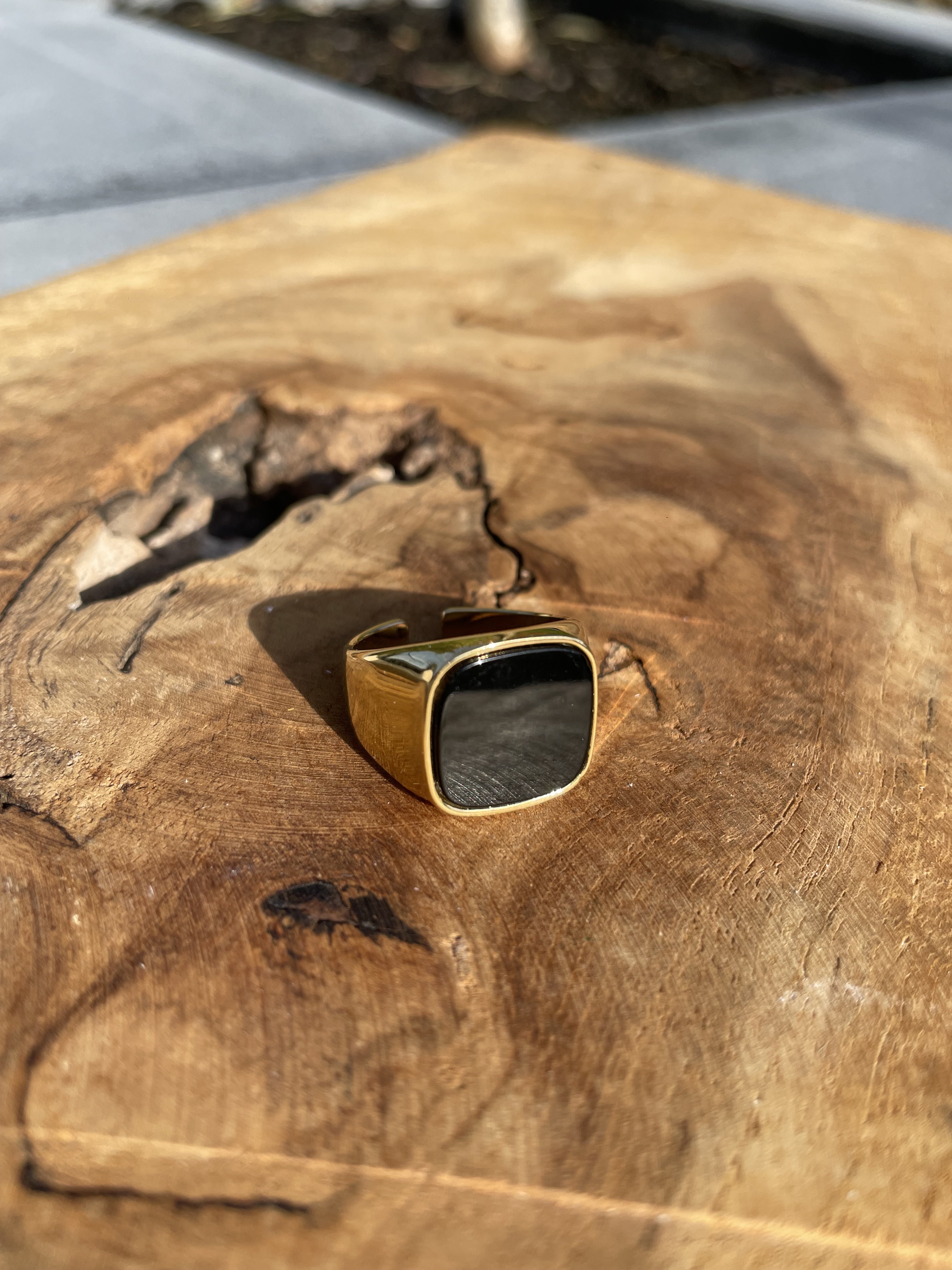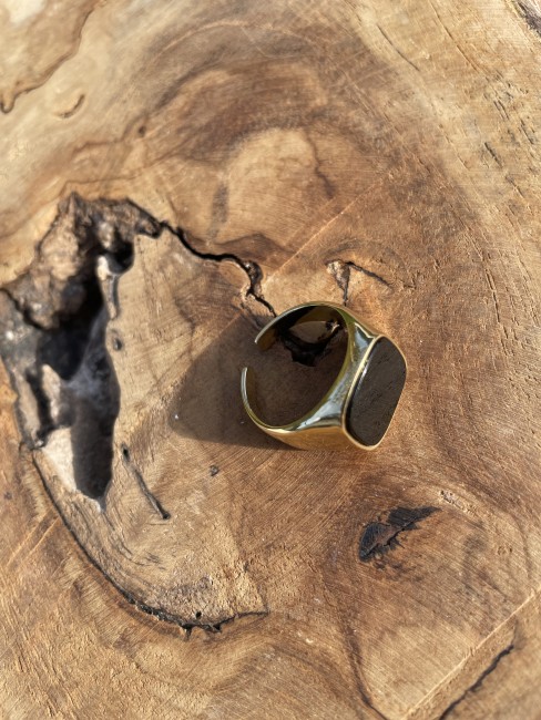 Bague en acier inoxydable avec pierre naturelle - Taille ajustable