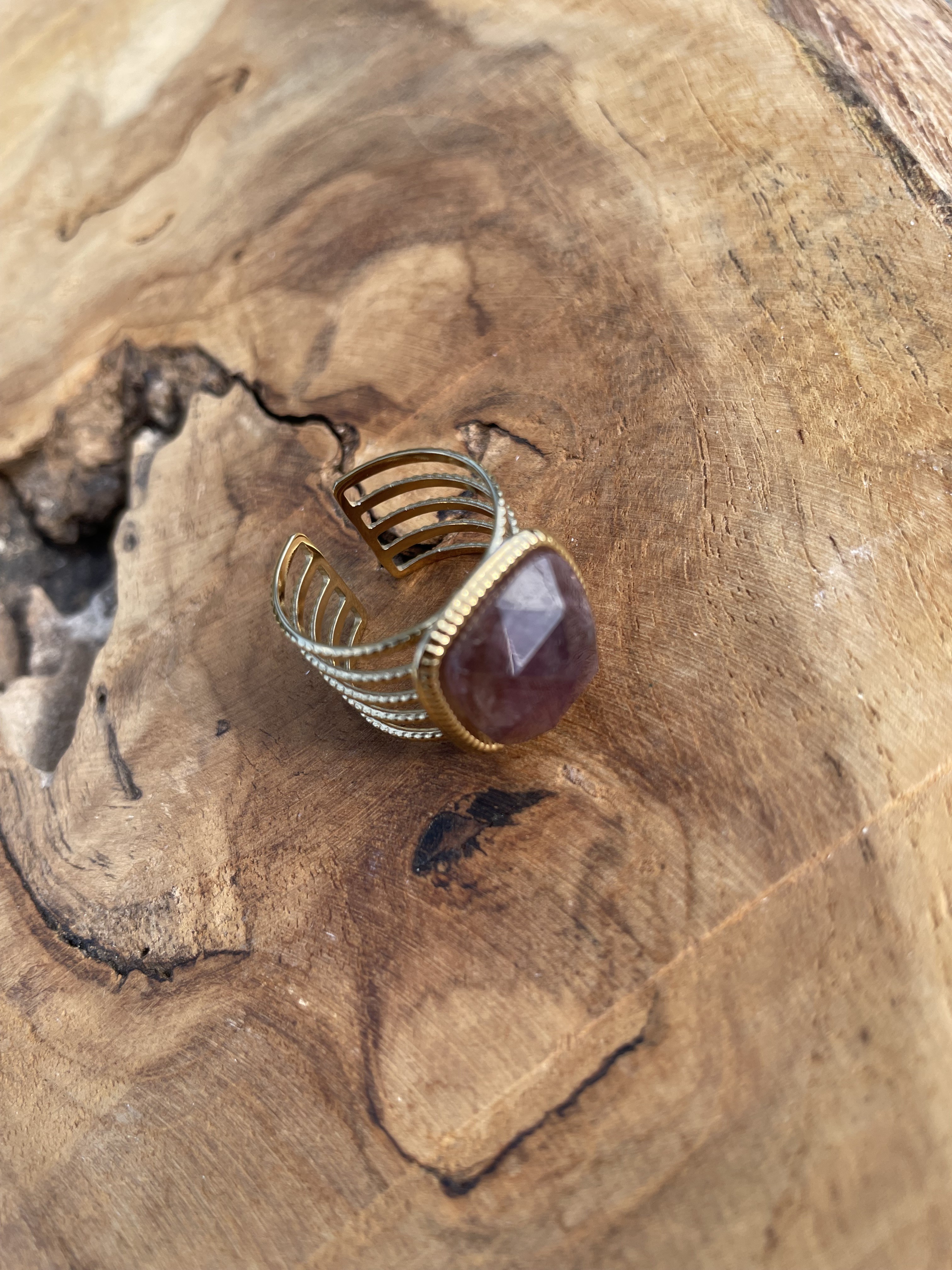 Bague avec pierre naturelle en Améthyste - Taille ajustable