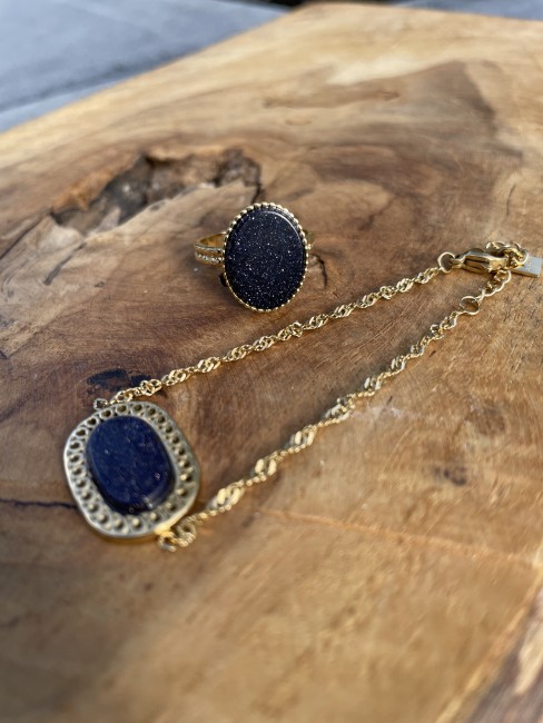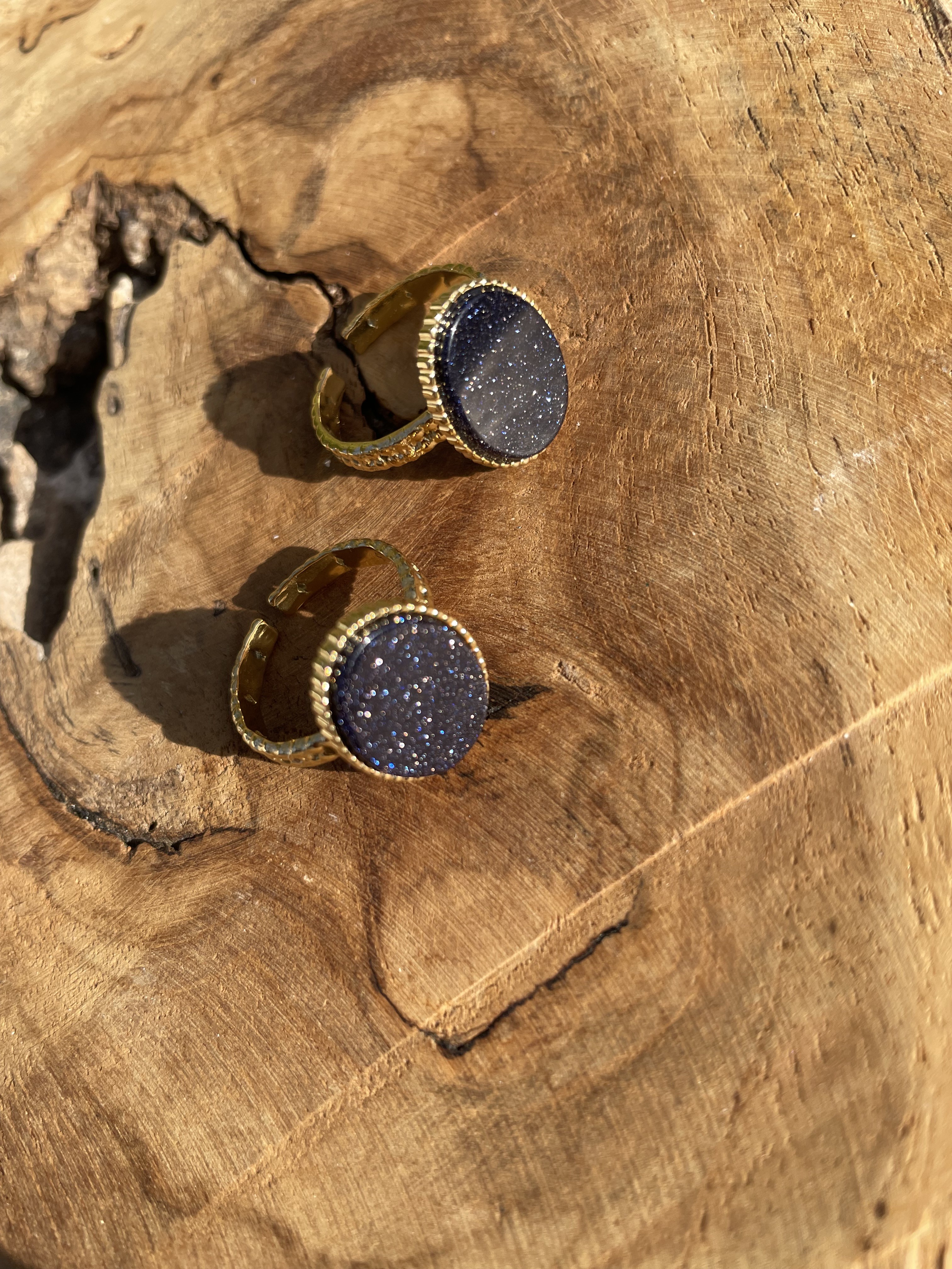 Bague en acier inoxydable avec pierre naturelle en Pierre de Sable - Taille ajustable